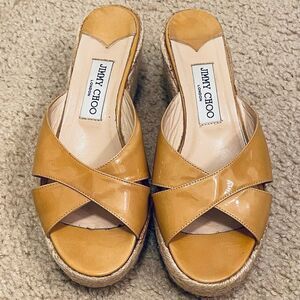 100% authentic Jimmy Choo Tan Patent Leather Espadrilles Sz39