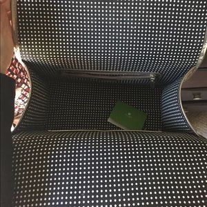 Gorgeous authentic Kate Spade wicker purse W 3 1/4 inch pink & red wide ribbon detail. Unique gold square turn closure. Chrome leather piping, straps & detail. All fasteners are stamped with the Kate Spade logo. Black and white polka dot fabric interior. 3 interior pockets one zipper pocket with Kate spade leather stamp. Measures 14" across 9 1/2" tall 5" wide. Side leather Kate Spade stamp. Straps are 8" tall. Mint condition used once. 20% off any 3 items just bundle and save!!