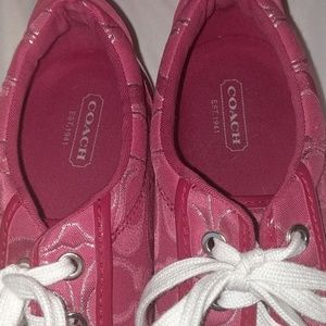 100% tick code shoes and coach purse to match the coach shoes or size 8 1/2 women's and have barely been worn as you can see in the pictures The purse has a drawstring pockets and gold hardware