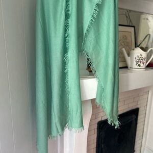 Add a touch of elegance with this mint green fringed 100% cashmere scarf