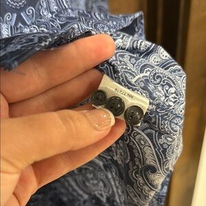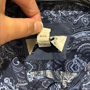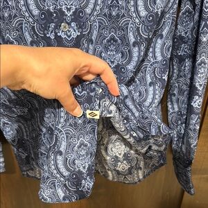 Like new! Elevate your style with this elegant blue paisley shirt. Perfect for any occasion, this shirt offers both comfort and sophistication.