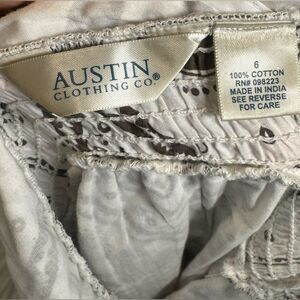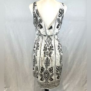 Lightweight dress with neck and smocked empire waist. Surplice split back. Euc