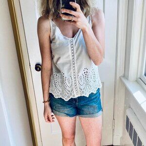 Very cute 100% cotton white Paige v-neck eyelet camisole tank top with adjustable straps. Nearly perfect pre-owned condition.