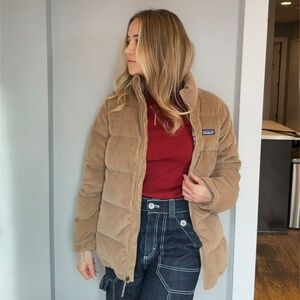100% down Patagonia Fjord tan corduroy puffer with fleece lining - like new