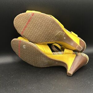 100% leather "lemon" yellow Miz Mooz Tricia Ankle Strap Sandal heels size 8