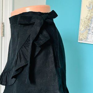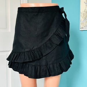 100% linen faux wrap skirt with ruffle trim and waist tie (size 10)