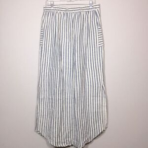 100% linen maxi skirt pockets elasticated waist blue stripe beachy coastal Sz L
