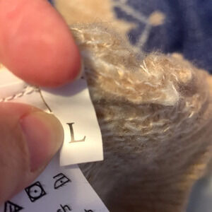 100% mohair tan blue white womens size large crew neck sweater Scandinavian knit