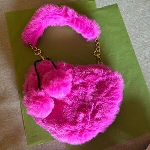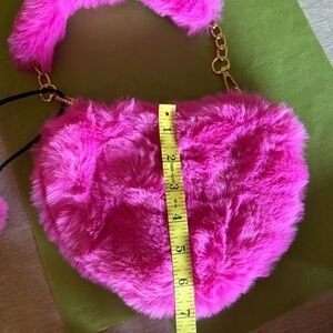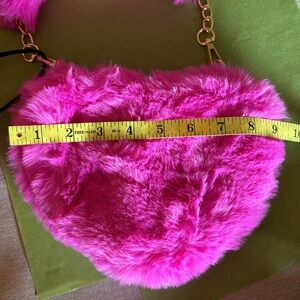 Beautiful bright pink shoulder bag with zipper closure and ample space for a phone and basic essentials. Comes with two proof balls and an extra chain… Admittedly the extra chain for Crossbody is not the highest end. The bag itself is super cute and lightweight… Doesn’t seem to shed and is lined with a polyester in the inside