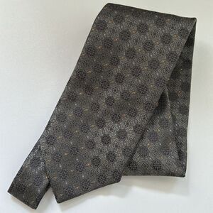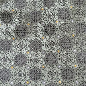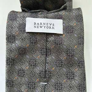 Barney's New York 100% silk tie in shades of grey and silver, with subtle orange accents. Metallic look to the fabric add texture and depth. Made in Italy