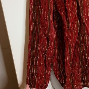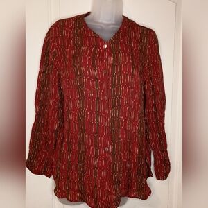 This soft comfortable long-sleeved shirt with a pattern of red and brown horizontal stripes and dotted details can be quite versatile. Here are some common uses: