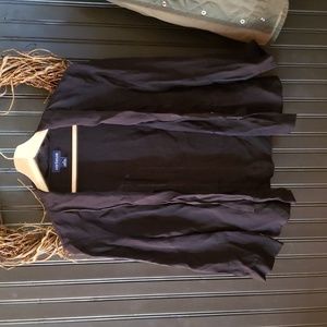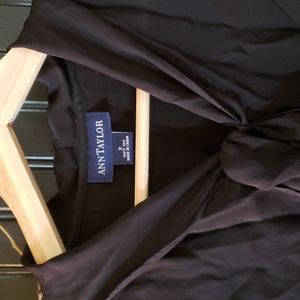 True black 100% silk blouse. sz 2, Ann Taylor fits true to size. Has a tie in the front collar and buttons down front. Wrinkled from storage but otherwise no obvious flaws to note.