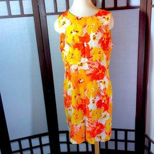 100% silk sheath dress/Casual Corner/ yellows, oranges/white/sleeveless/lined