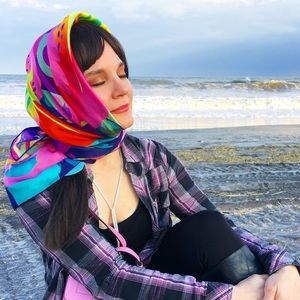 Pure silk scarf for women square 36" x 36" ( 90x90 cm ). Saturated colors, art quality print.