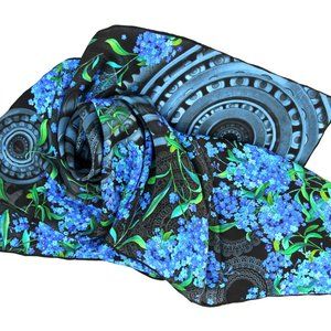 100% silk square scarf wrap "Forget-me-nots" grey blue floral