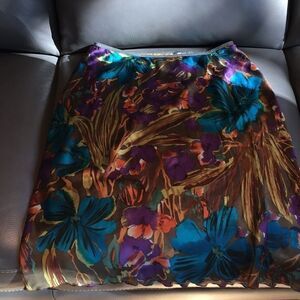 100% silk Calvin Klein lightweight brown aqua orange skirt floral ripple hem 6