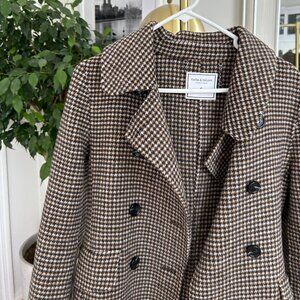 100% wool houndstooth long coat