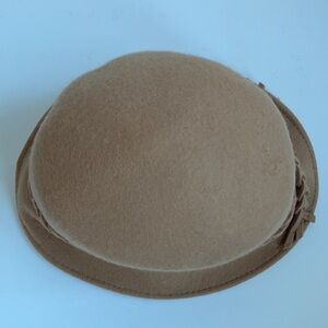 Darling winter 100% wool camel colored bucket hat w braided trim.