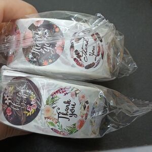 two rolls of floral print Thank you stickers