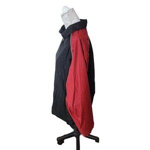 This Men's XL Black and Red Wet Weather Coat Jacket from 10,000 Feet Above Sea Level is perfect for any season, whether it's winter, summer, fall, or spring. The jacket features a colorful colorblock pattern and is made of durable polyester outer shell material. It has a mid-length coat length and a chest size of 50, making it suitable for most men.