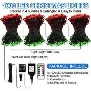 1000LED 394ft Super Long Ultra-Bright Christmas Lights 8 Modes & Timer Plug in