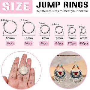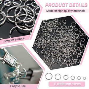 Package includes: 1000pcs stainless steel jump rings; 4 mm/400pcs, 5 mm/270pcs, 6 mm/150pcs, 7 mm/80pcs, 8 mm/60pcs, 10 mm/40pcs, enough to meet your different needs