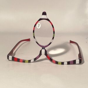 When you unpack your makeup glasses, you might be surprised. They have only one lens, it's intentional. These glasses feature a half frame and a single lens, allowing you to enhance one of your eye's vision, while applying makeup to the other. The open top portion gives you plenty of space to maneuver cosmetic tools. The lense is hinged, easily rotating from one side to the other side.