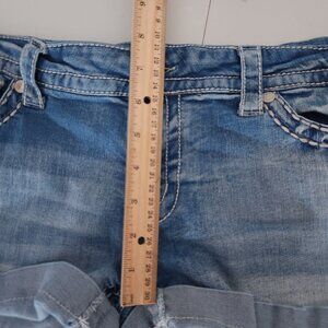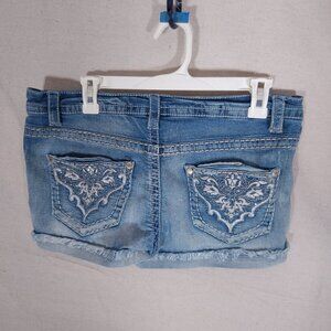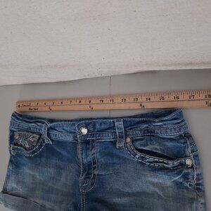 Knox Rose Denim Shorts Womens 12/31 Midi Blue Frayed Hem Embroidered Bling Boho