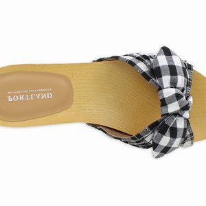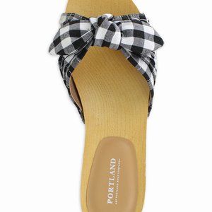 1002231New never been worn Women Clog Sandaals wooden bottom and cloth material