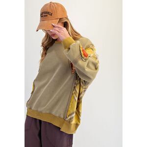 EASEL Large Size Heart Plaid Flannel Patch Mineral Washed Pullover Sweatshirt