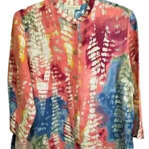 (1009) CLOTHES Women's Multicolor 3/4 Sleeve Linen Blend Top Size XL