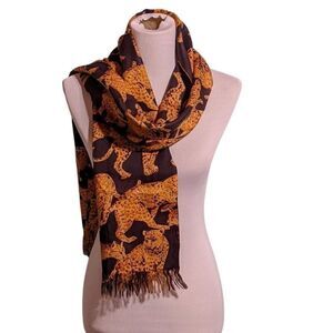 100% ACRYLIC DOUBLE SIDED LEOPARD PRINT FRINGED SCARF