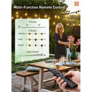 100FT LED Outdoor String Lights, Remote Dimmable Patio Lights with Timer