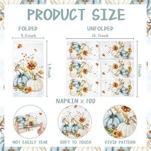 【Ample Quantity】Includes 100pcs rectangle thanksgiving guest napkins that measure 7.9" x 4.3" (folded) and 15.7" x 13" (unfolded). Plenty of napkins are sufficient to meet your different needs. Great addition to fall table decorations.