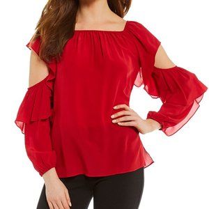 100%Silk Lynn Long Sleeve Cold/Off Shoulder Blouse