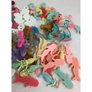 You will receive mix of mermaids, happy faces, unicorns, mermaid tails, clouds. Each order will have a good assorted mix
