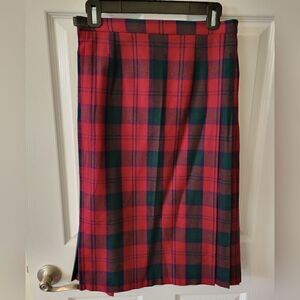 %100 wool plaid warp midi skirt, with buckles, vintage Size 16 ( Runs small) check measurements in photo