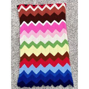 100"x58" Large Handmade Rainbow Stripe Chevron Colorful Pride Crochet AFGHAN EUC