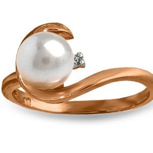 With this 14k solid gold ring with natural diamond and pearl, it is possible for any woman to have a classic and beautiful piece to add to her collection. The highlight of this piece is the beautiful white natural pearl, which weighs in at one carat. A round cut natural diamond is set in the band to accent the beauty of the pearl.
