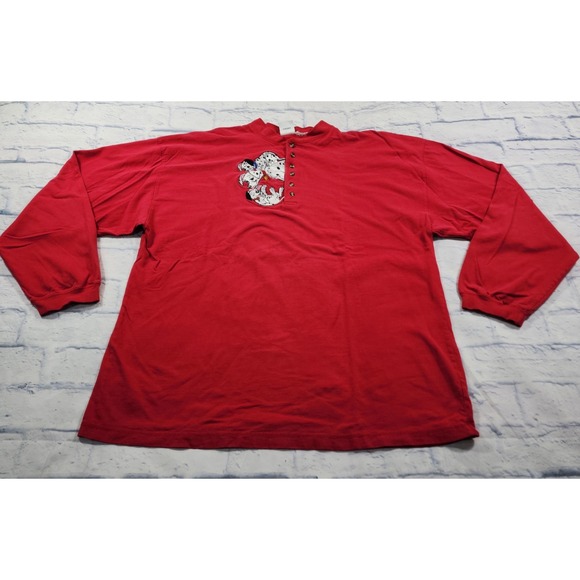 101 Dalmatians SIZE XL Embroidered Shirt Red Henley Disney Mickey Inc VINTAGE