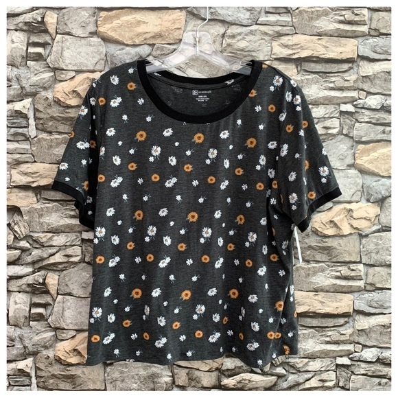 #101 No Boundaries Y2K Style Daisies Print Short Sleeve Ringer Top Shirt XXXL New