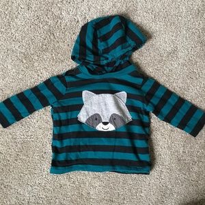Striped hoodie with racoon face on the front