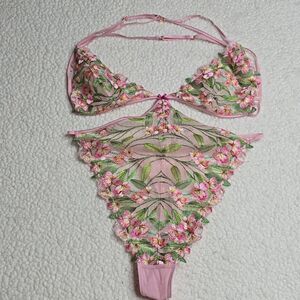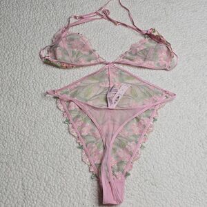 1014 Victoria Secret Lily Embroidery Triangle Teddy Sz Small