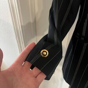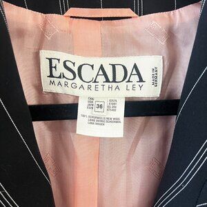 1015 Escada Striped Two Button Blazer Jacket Size 36 Color Black White Gold