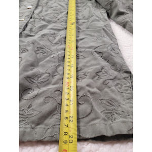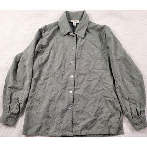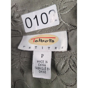 [102] Talbots Petites Floral Embroidered Olive Button Up Blouse- Size PP (0-2)
