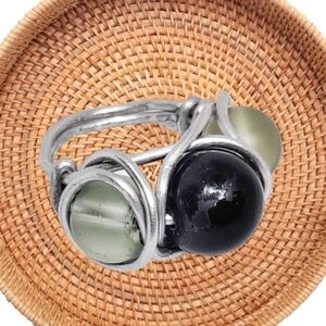 .🎄10/$20. ~Black and Green Beads Hand Wired Ring