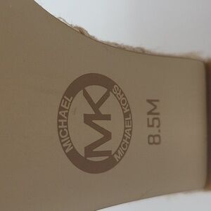 • Features: Crisscross ankle straps with buckle closure, platform wedge heel, signature MK pattern