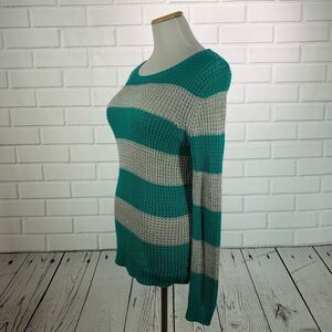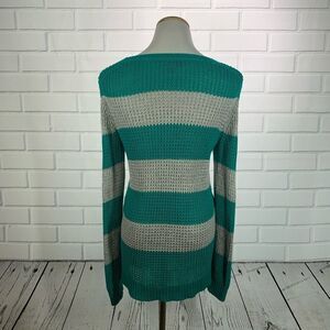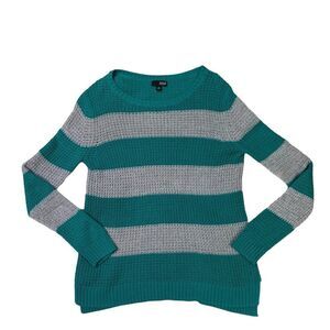 10/$25🦋 a.n.a Green & Gray Striped Knit Sweater - Size Medium