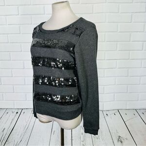Forever 21 Black Sequin Stripe Crew Neck Sweater - Size Large. No missing sequins.