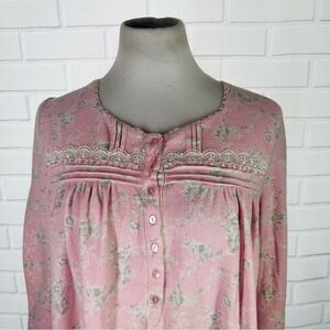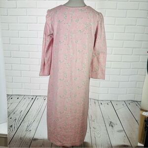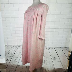 Vintage Earth Angels Light Pink Floral Pullover Robe/House Coat - Size Medium. Good vintage condition shows normal signs of wear. Measurements are shown in the 10th - 14th photos.